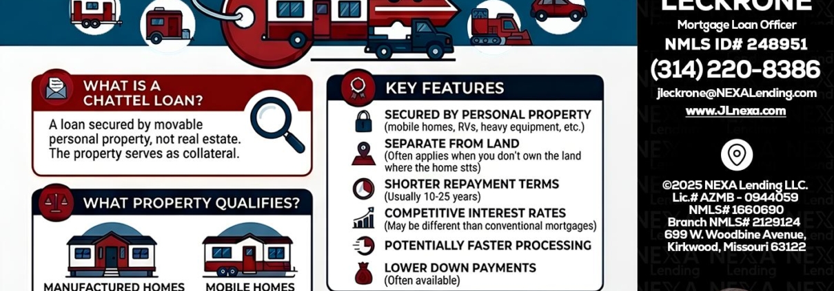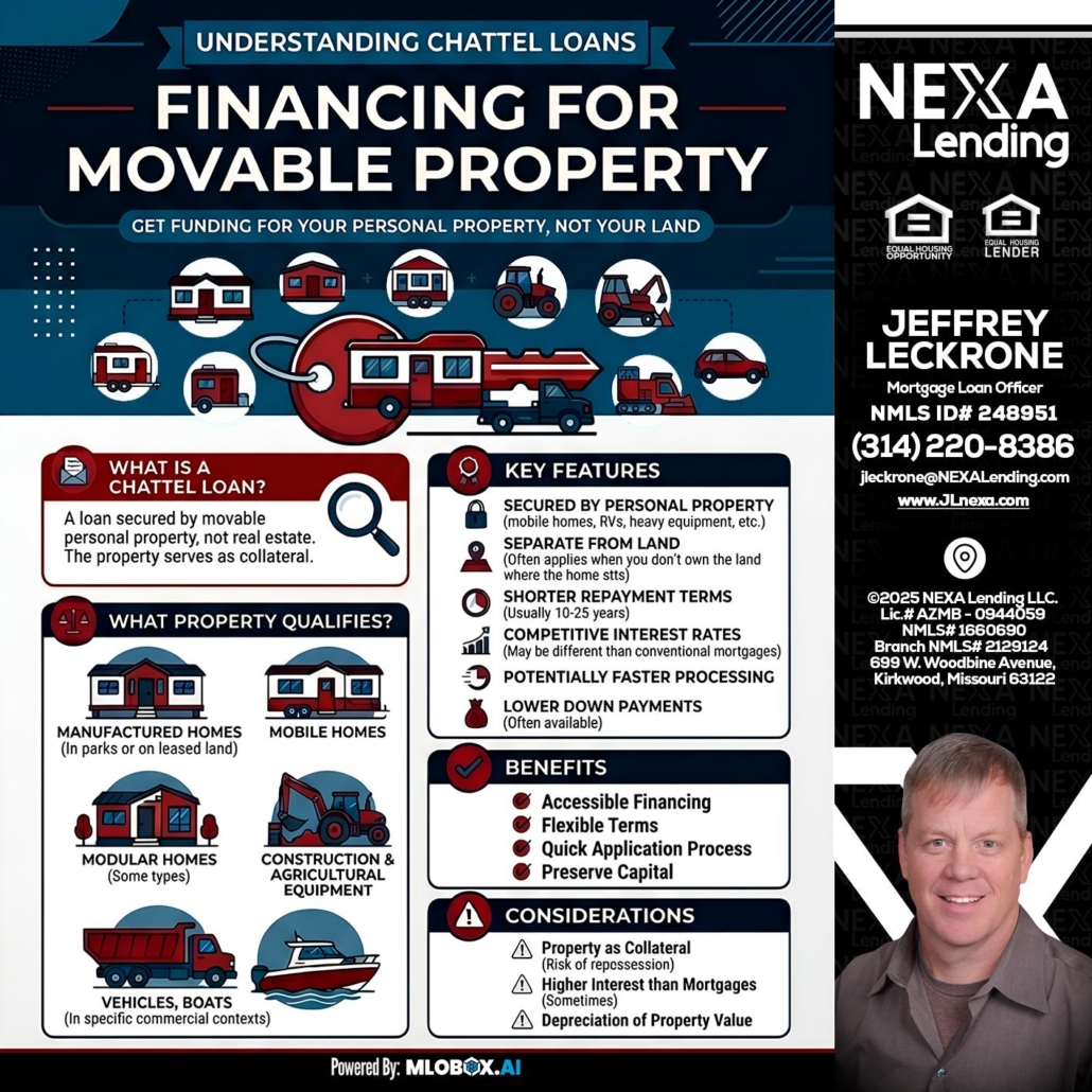 Chattel Loans - Jeffrey Leckrone -Mortgage Loan OriginatorHi, my name is Jeffrey Leckrone. I’m a Loan Officer offering personalized mortgage solutions, fast customized quotes, great rates and service with integrity. If you’re interested in learning more about the Chattel loan or any other, just let me know and I’ll walk you through your options.